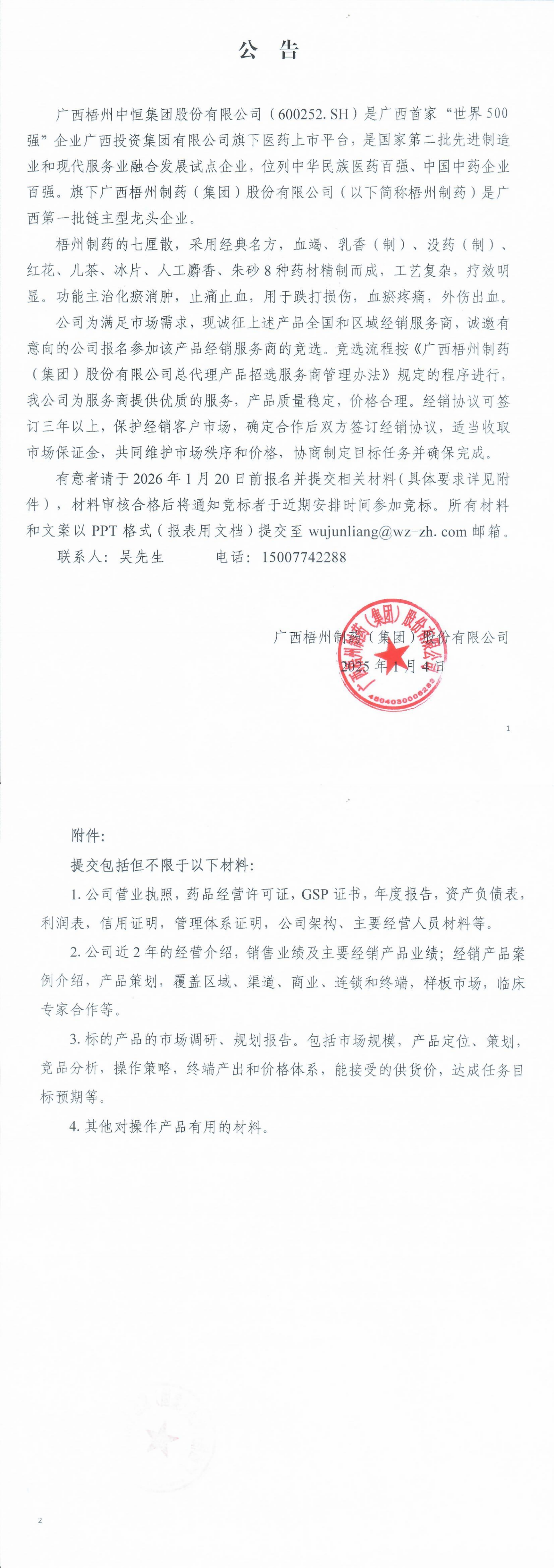 元旦快樂【你好2026】值此元旦佳節(jié),梧州制藥向全體員工、合作伙伴及社會(huì)各界朋友致以最誠摯的問候!2026年,我們將繼續(xù)以品質(zhì)筑牢根基,以創(chuàng)新驅(qū)動(dòng)發(fā)展讓中醫(yī)藥在新時(shí)代煥發(fā)生機(jī)祝大家元旦快樂,歲歲安康!HAPPY NE