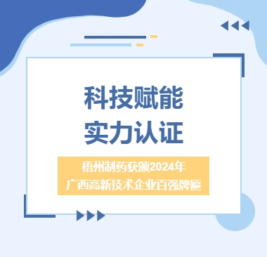 科技賦能實力認證梧州制藥獲頒2024年廣西高新技術(shù)企業(yè)百強牌匾近日,標志著“2024年廣西高新技術(shù)企業(yè)百強”榮譽的官方牌匾,正式送達廣西梧州制藥(集團)股份有限公司(以下簡稱:梧州制藥)。這不僅為此次評選畫上圓